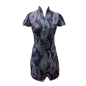 GD-024C || Golf Dress Navy & Front Short Hem Split with Rear Pleated Hem Panel Lapel Zip Fastening Pink White & Gold Modern Batik